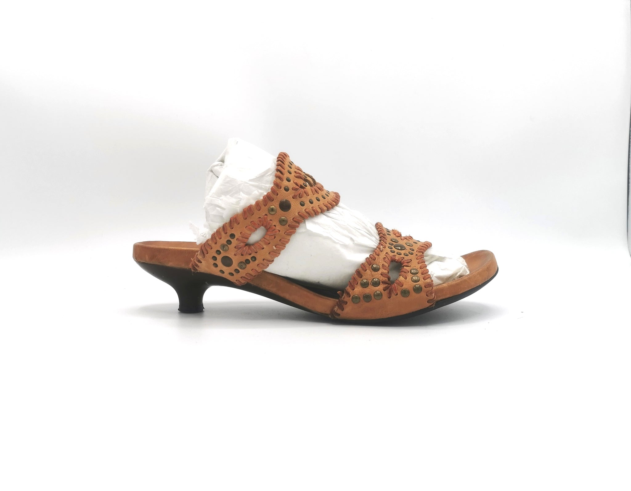 WOMENS SIZE (38) 7.5 - Arnold Churgin leather sandals kitten heal VGUC B61
