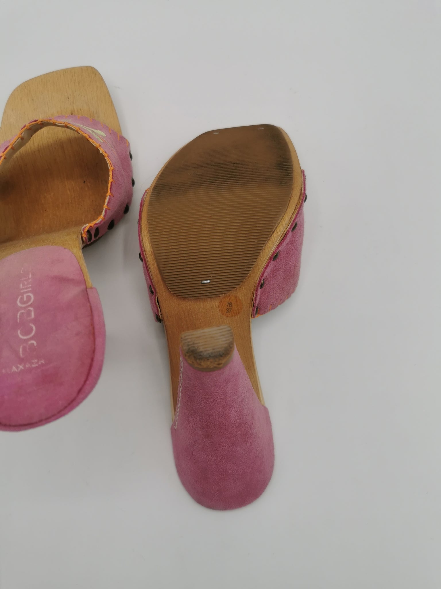WOMENS SIZE 7 - BCBGIRLS Pink Wooden Sandals, Leather EUC B61